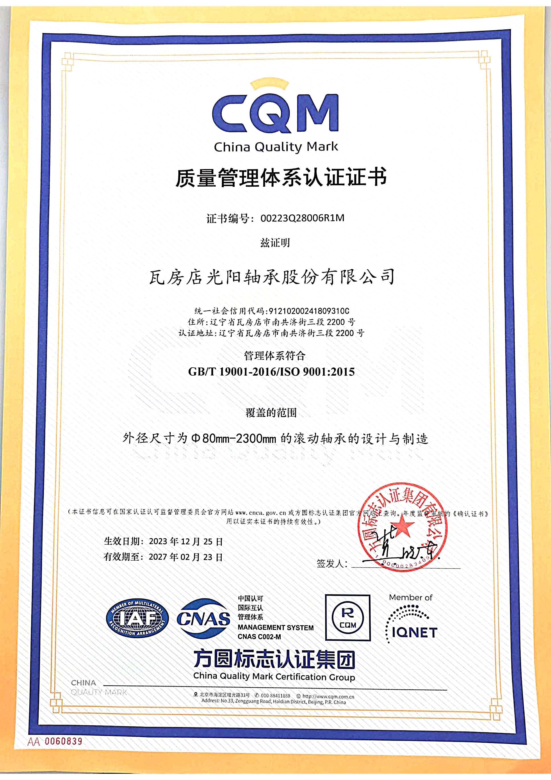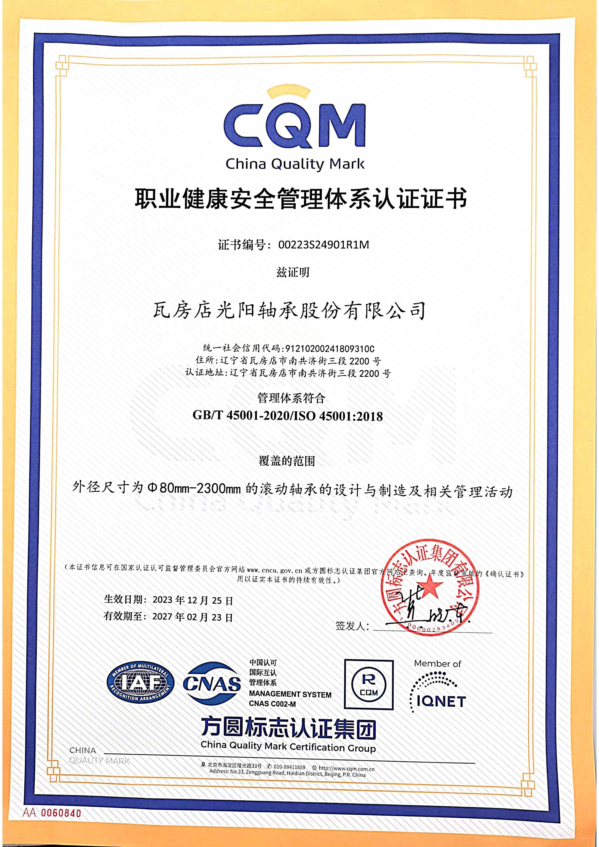 瓦房店光陽(yáng)軸承股份有限公司